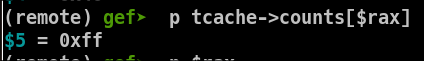 # tcache->counters[15] = -1 (unsigned 0xff)