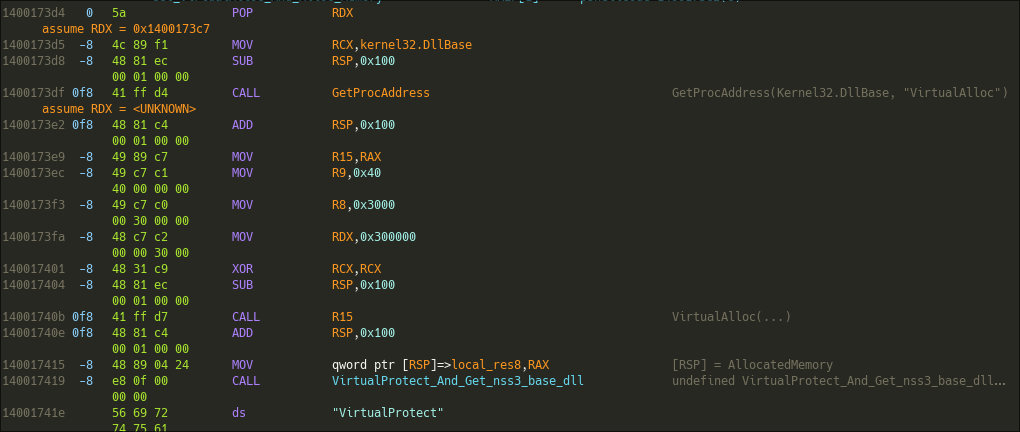 ql = Qiling(code=SHELLCODE, ostype=QL_OS.WINDOWS, archtype=QL_ARCH.X8664 ,rootfs="./firefox/x8664_windows/", verbose=QL_VERBOSE.DISASM)